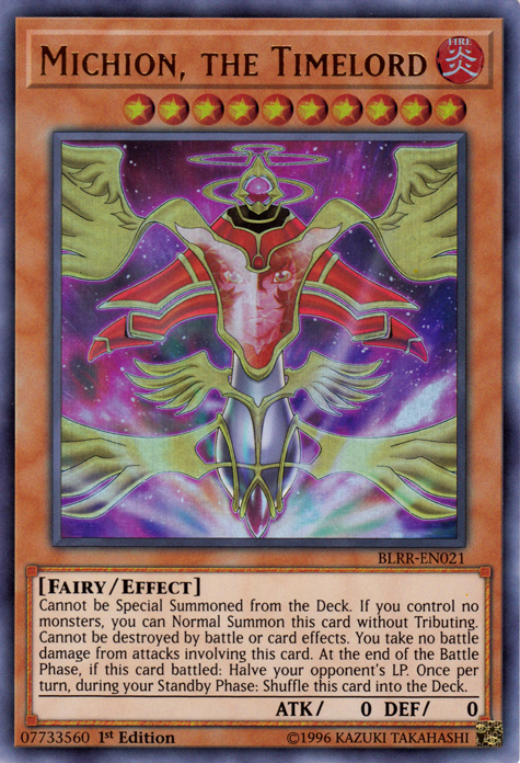Cannot be Special Summoned from the Deck. If you control no monsters, you can Normal Summon this card without Tributing. Cannot be destroyed by battle or card effects. You take no battle damage from attacks involving this card. At the end of the Battle Phase, if this card battled: Halve your opponent's LP. Once per turn, during your Standby Phase: Shuffle this card into the Deck.