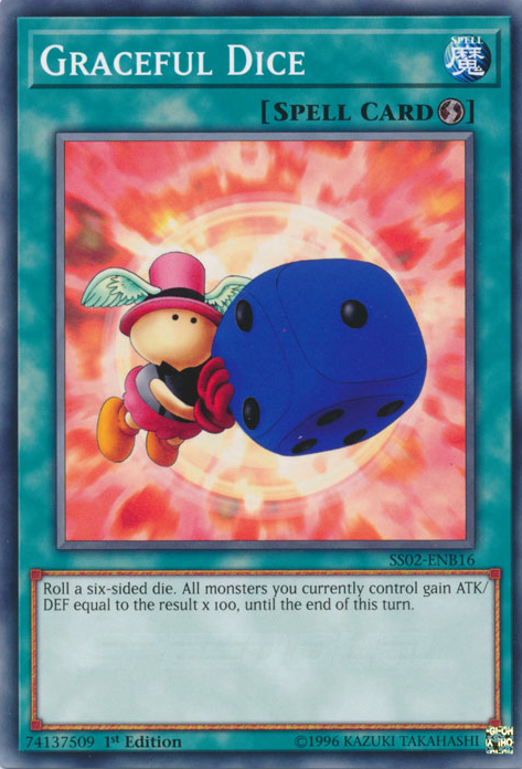 Roll a six-sided die. All monsters you currently control gain ATK and DEF equal to the result x 100, until the end of this turn.