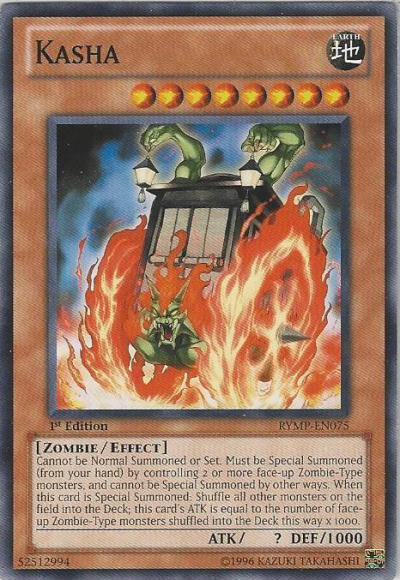 Cannot be Normal Summoned or Set. Must be Special Summoned (from your hand) by controlling 2 or more face-up Zombie-Type monsters, and cannot be Special Summoned by other ways. When this card is Special Summoned: Shuffle all other monsters on the field into the Deck; this card's ATK is equal to the number of face-up Zombie-Type monsters shuffled into the Deck this way × 1000.