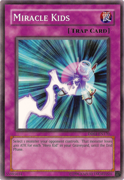 Select 1 monster your opponent controls That monster loses 400 ATK for each "Hero Kid" in your Graveyard, until the End Phase.