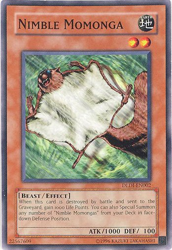 When this card is destroyed by battle and sent to the Graveyard, gain 1000 Life Points. You can also Special Summon any number of "Nimble Momongas" from your Deck in face-down Defense Position.
