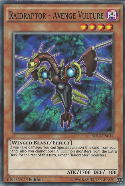 If you take damage: You can Special Summon this card from your hand, also you cannot Special Summon monsters from the Extra Deck for the rest of this turn, except "Raidraptor" monsters.