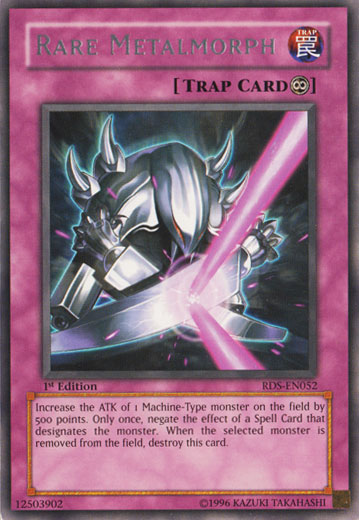 Increase the ATK of 1 Machine-Type monster on the field by 500 points. Only once, negate the effect of a Spell Card that designates the monster. When the selected monster is removed from the field, destroy this card.