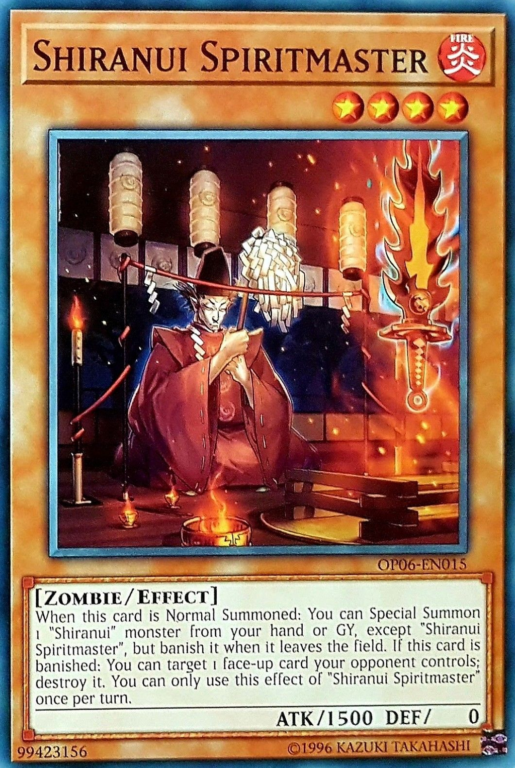 When this card is Normal Summoned: You can Special Summon 1 "Shiranui" monster from your hand or GY, except "Shiranui Spiritmaster", but banish it when it leaves the field. If this card is banished: You can target 1 face-up card your opponent controls; destroy it. You can only use this effect of "Shiranui Spiritmaster" once per turn.