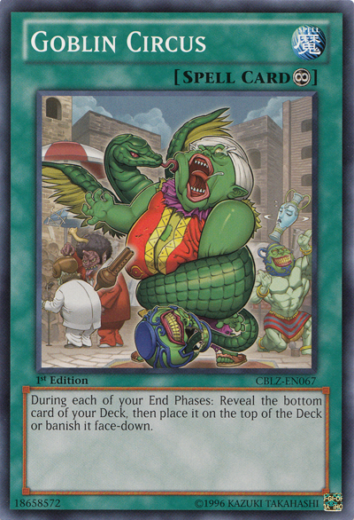 During each of your End Phases: Reveal the card at the bottom of your Deck, then either place it on the top of your Deck or banish it, face-down.