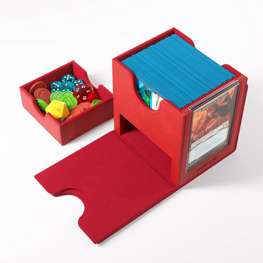 The Sidekick PRO holds 100 double-sleeved cards in extra Thick Inner Sleeves. It can also fit 100 regular double-sleeved cards and has extra room for token cards. This premium box is also equipped with our highly rated convertible system: The completely removable cover clips onto the bottom, saving precious space on the gaming table. The Sidekick PRO is available in all 5 colors used in Magic: The Gathering™.