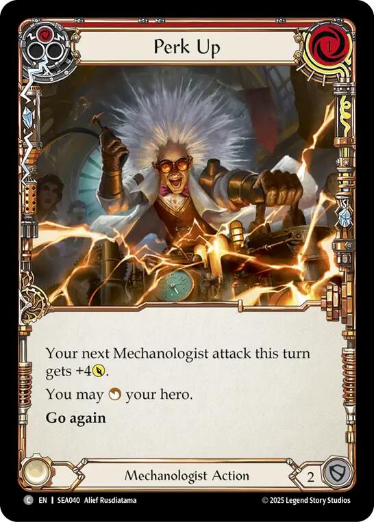 Your next Mechanologist attack this turn gets +4POWER. You may UNTAP your hero. go again