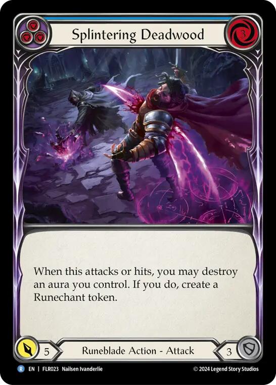 When this attacks or hits, you may destroy an aura you control. If you do, create a Runechant token.