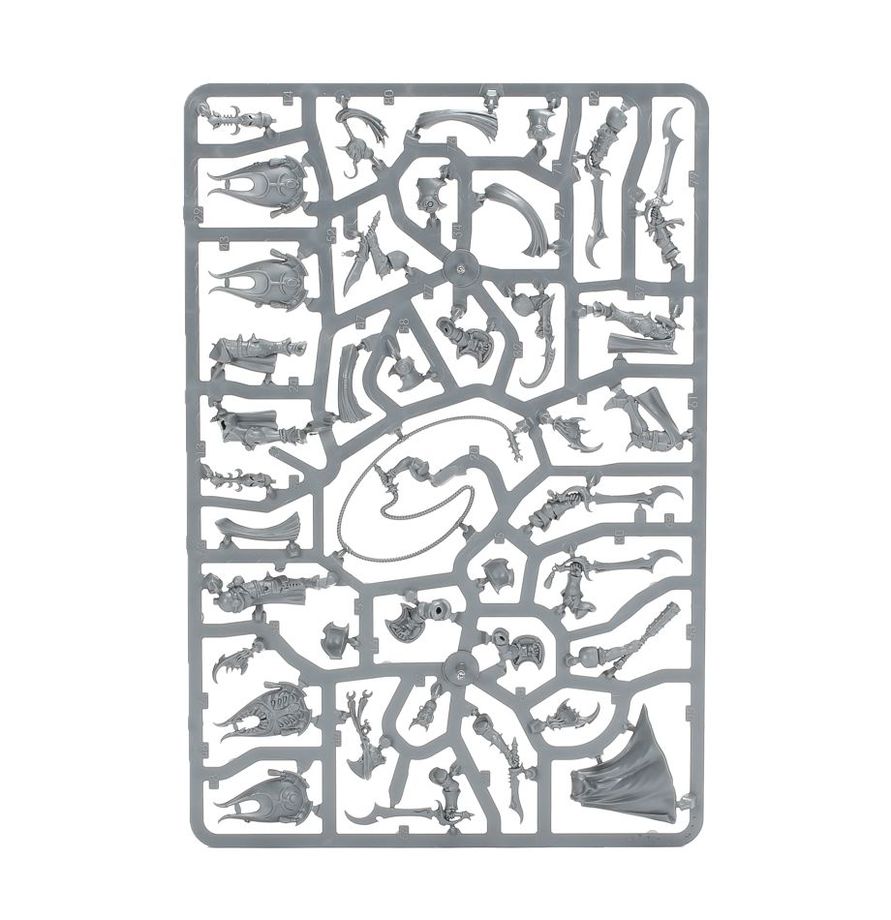 This 86-part plastic kit makes five Mymidesh Painbringers for use in Warhammer Age of Sigmar. It comes supplied with five 32mm Round Citadel bases. The kit can alternately be built as Symbaresh Twinsouls.