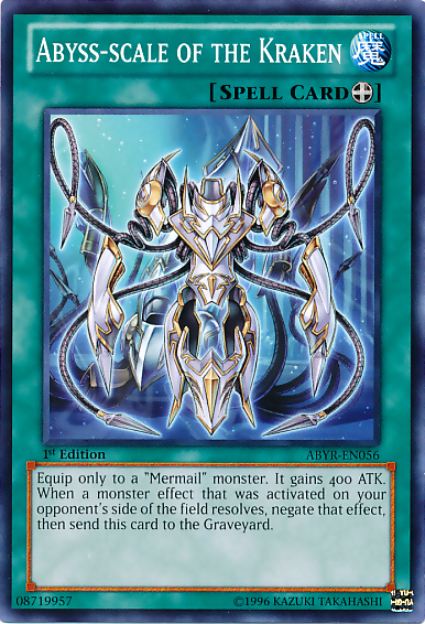 Equip only to a "Mermail" monster. It gains 400 ATK. When a monster effect that was activated on your opponent's side of the field resolves, negate that effect, then send this card to the Graveyard.