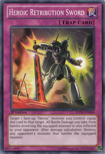 Target 1 face-up "Heroic" monster you control; equip this card to that target. All Battle Damage you take from battles involving the equipped monster is also inflicted to your opponent. After damage calculation: Destroy any opponent's monster that battles the equipped monster.