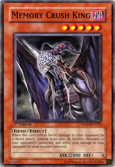 When this card inflicts Battle Damage to your opponent by a direct attack, remove from play all Synchro Monsters in your opponent's Graveyard and inflict 1000 damage to your opponent for each monster removed.