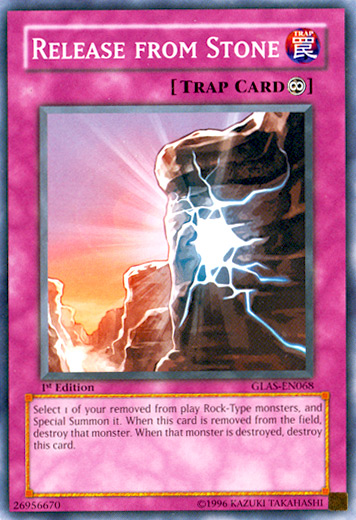 Select 1 of your removed from play Rock-Type monsters that is removed from play, and Special Summon it. When this card is removed from the field, destroy that monster. When that monster is destroyed, destroy this card.