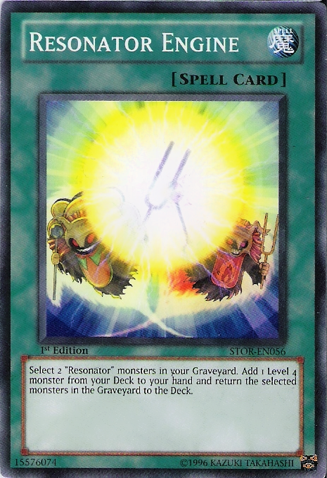 Select 2 "Resonator" monsters in your Graveyard. Add 1 Level 4 monster from your Deck to your hand and return selected monsters in the Graveyard to the Deck.