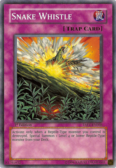 Activate only when a Reptile-Type monster you control is destroyed. Special Summon 1 Level 4 or lower Reptile-Type monster from your Deck.