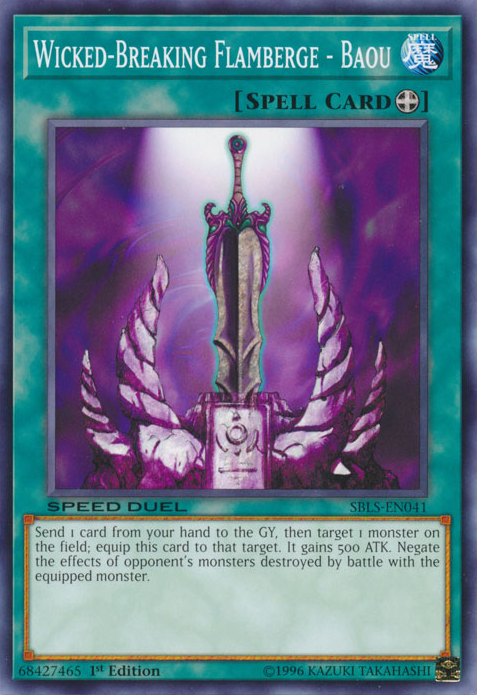 Send 1 card from your hand to the GY, then target 1 monster on the field; equip this card to that target. It gains 500 ATK. Negate the effects of opponent's monsters destroyed by battle with the equipped monster.