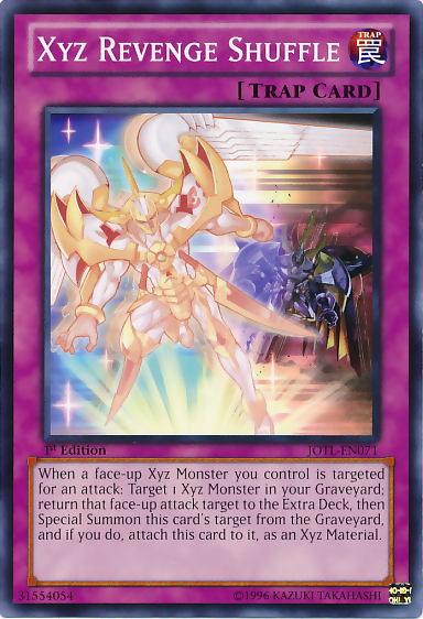 When a face-up Xyz Monster you control is targeted for an attack: Target 1 Xyz Monster in your Graveyard; return that face-up attack target to the Extra Deck, then Special Summon this card's target from the Graveyard, and if you do, attach this card to it as an Xyz Material.