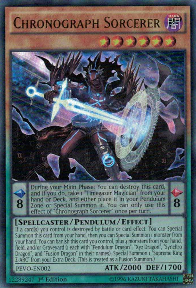 If a card(s) you control is destroyed by battle or card effect: You can Special Summon this card from your hand, then you can Special Summon 1 monster from your hand. You can banish this card you control, plus 4 monsters from your hand, field, and/or Graveyard (1 each with "Pendulum Dragon", "Xyz Dragon", "Synchro Dragon", and "Fusion Dragon" in their names); Special Summon 1 "Supreme King Z-ARC" from your Extra Deck. (This is treated as a Fusion Summon.)