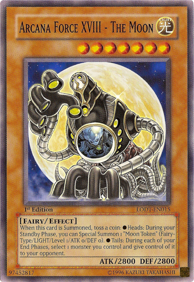 When this card is Summoned, toss a coin: •Heads: During your Standby Phase, you can Special Summon 1 "Moon Token" (Fairy-Type/LIGHT/Level 1/ATK 0/DEF 0). •Tails: During each of your End Phases, select 1 monster you control and give control of it to your opponent.