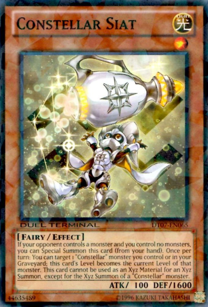 If your opponent controls a monster and you control no monsters, you can Special Summon this card (from your hand). Once per turn: You can target 1 "Constellar" monster you control or in your Graveyard; this card's Level becomes the current Level of that monster. This card cannot be used as an Xyz Material for an Xyz Summon, except for the Xyz Summon of a "Constellar" monster.