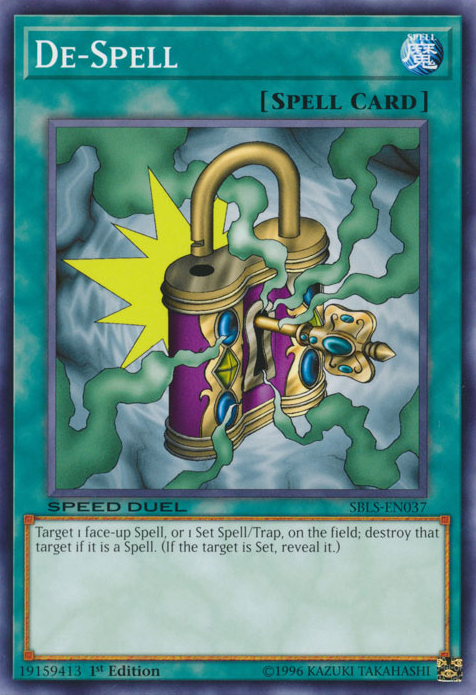 Target 1 face-up Spell, or 1 Set Spell/Trap, on the field; destroy that target if it is a Spell. (If the target is Set, reveal it.)