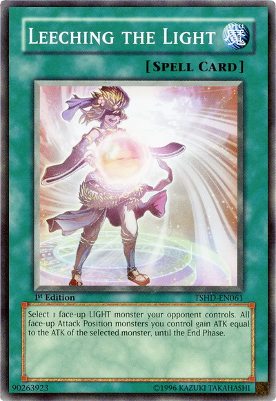 Select 1 face-up LIGHT monster your opponent controls. All face-up Attack Position monsters you control gain ATK equal to the ATK of the selected monster, until the End Phase.
