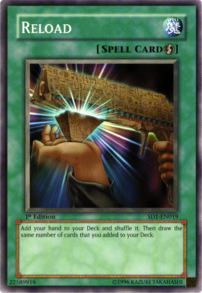 Add all cards in your hand to your Deck and shuffle it. Then draw the same number of cards that you added to your Deck.