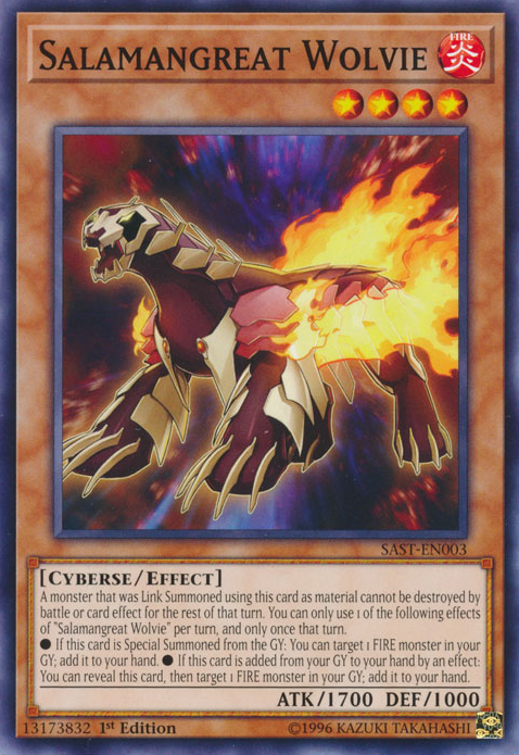 A monster that was Link Summoned using this card as material cannot be destroyed by battle or card effect for the rest of that turn. You can only use 1 of the following effects of "Salamangreat Wolvie" per turn, and only once that turn.