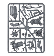 This multi-part plastic kit contains the components necessary to assemble a set of 3 Deathshroud Bodyguard. Impressively large and dense, covered in rot, decay, tentacles and horror, these models exemplify the corrupting gift that Nurgle imparts. Each is armed with a manreaper – a large scythe, pitted and pockmarked with rust and disease, it stands even taller than the Deathshroud who brandish it – and a plaguespurter gauntlet, used to squirt unpleasant maladies at the unfortunate. Each of the three is bedecked with Nurgle symbolism, found in the rust, boils and chips in their armour, through which vile tentacled and bloated flesh poke, barely covered by ragged cloaks. there are 7 variant heads included, a mix of helmeted and bare, and an extra plaguespurter gauntlet – this is for an optional unit Champion, who has the option of wielding two of these.